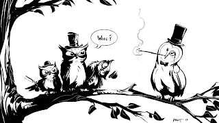 A couple weeks back, i went to the SF Zoo with the girls and saw these 2 awesome Owls - a barn owl, and a eurasian eagle owl. I've always thought that barn owls looked like the planters peanut guy, so i guess that's kinda where this one came from. Another inktober entry, of sorts...
